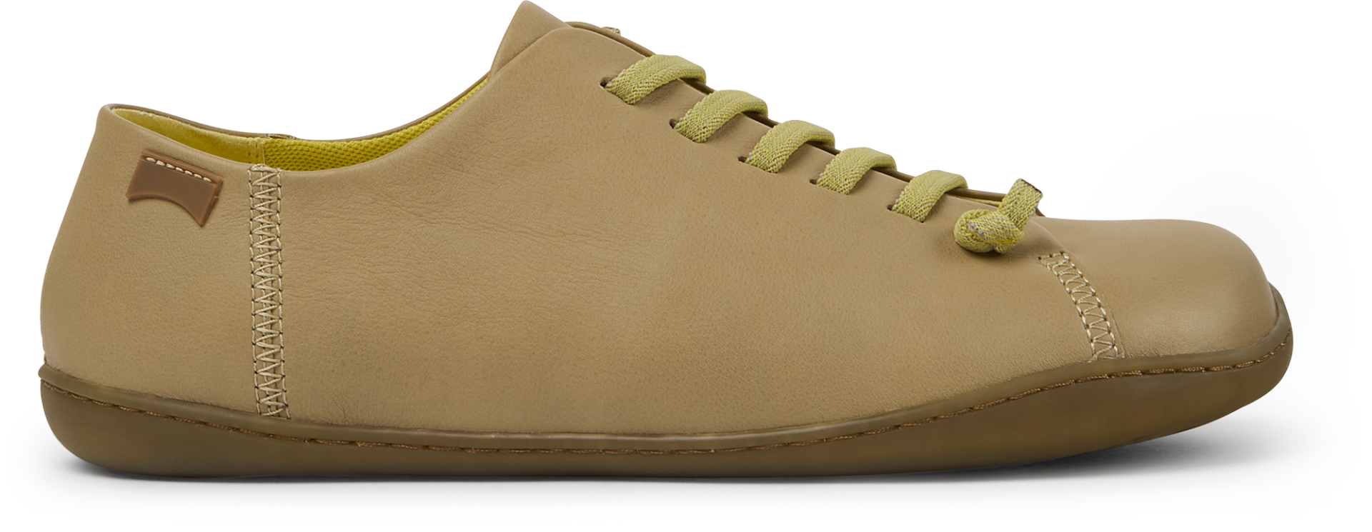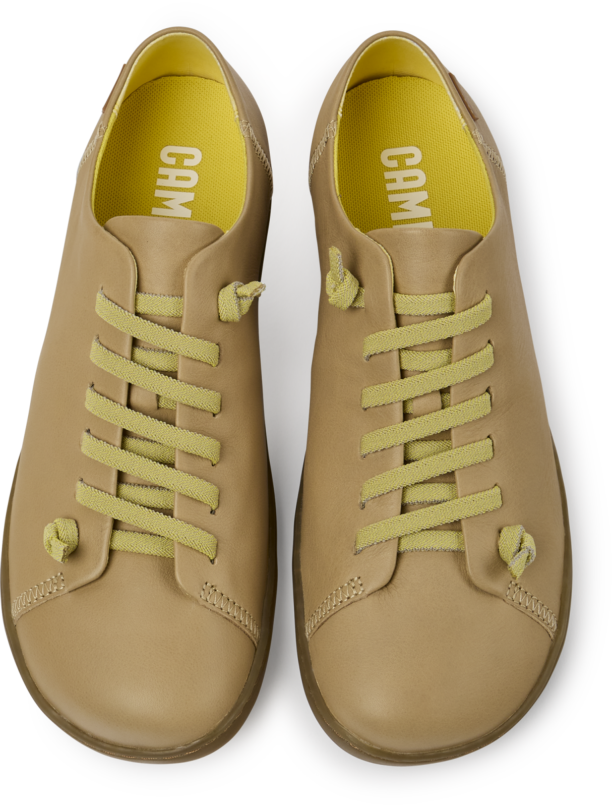 Beige kožené dámské celoročky s podrážkou ze 100% TPU (20% recyklace) a s praktickými elastickými tkaničkami.